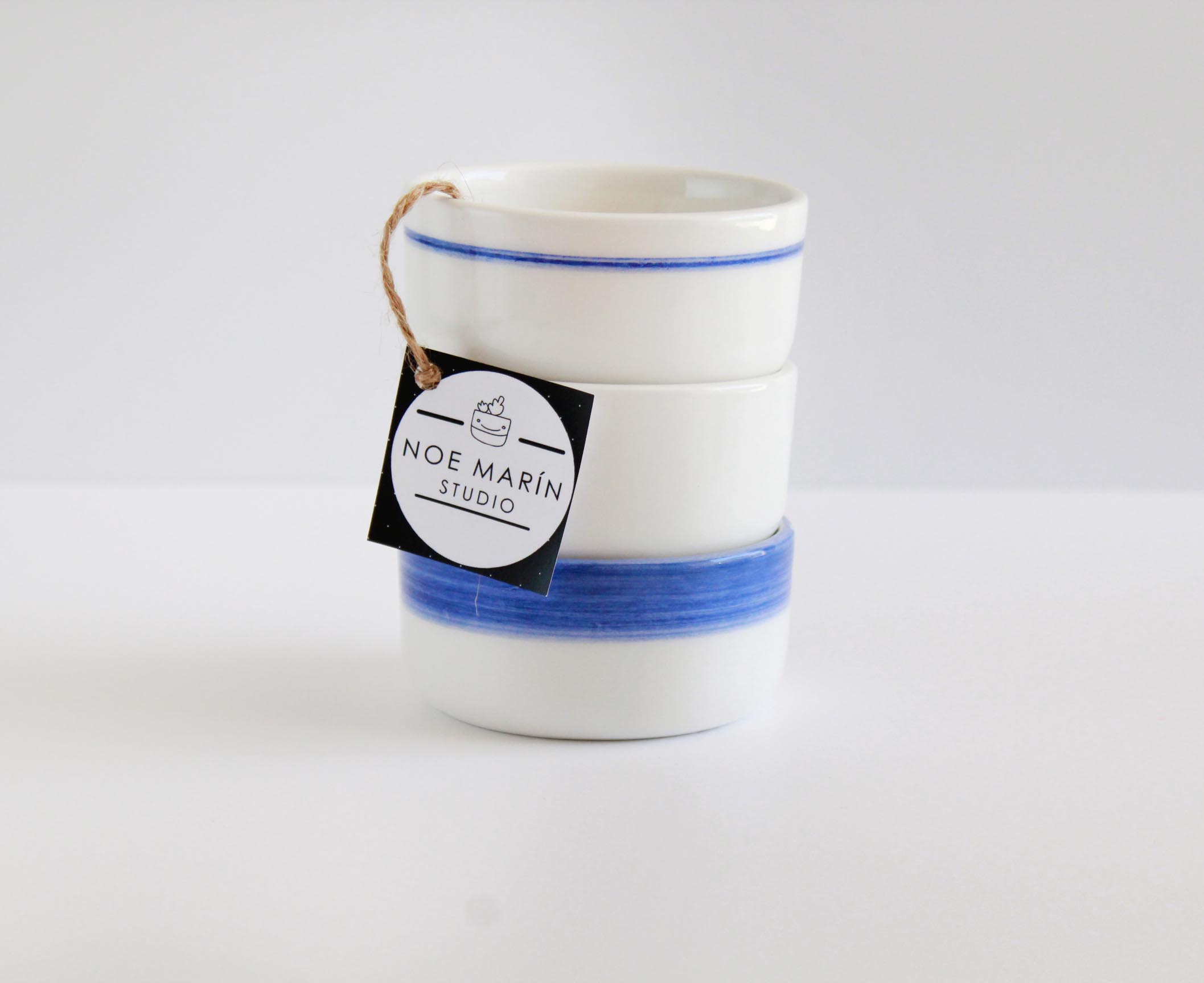 Hechos a y pintados a mano uno por uno con un color cobalto precioso y un esmalte brillante.