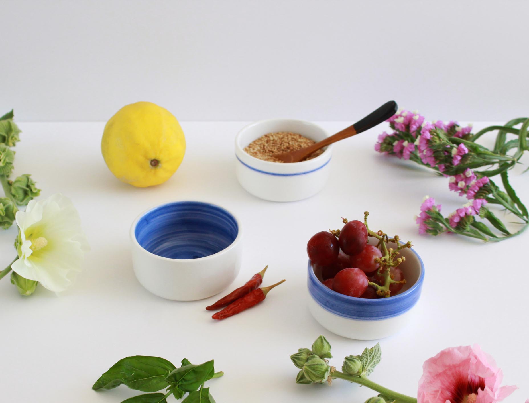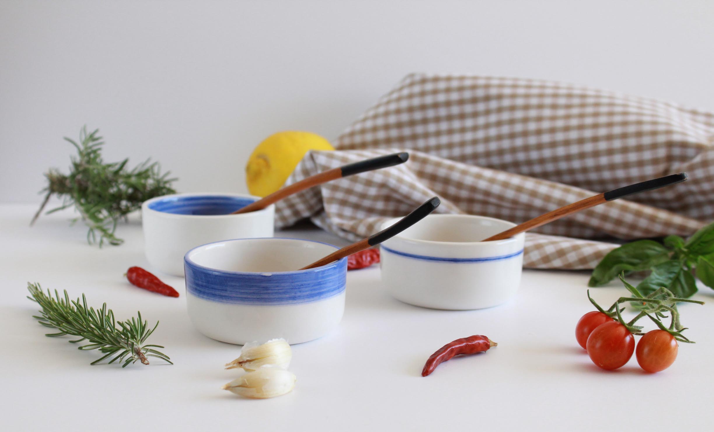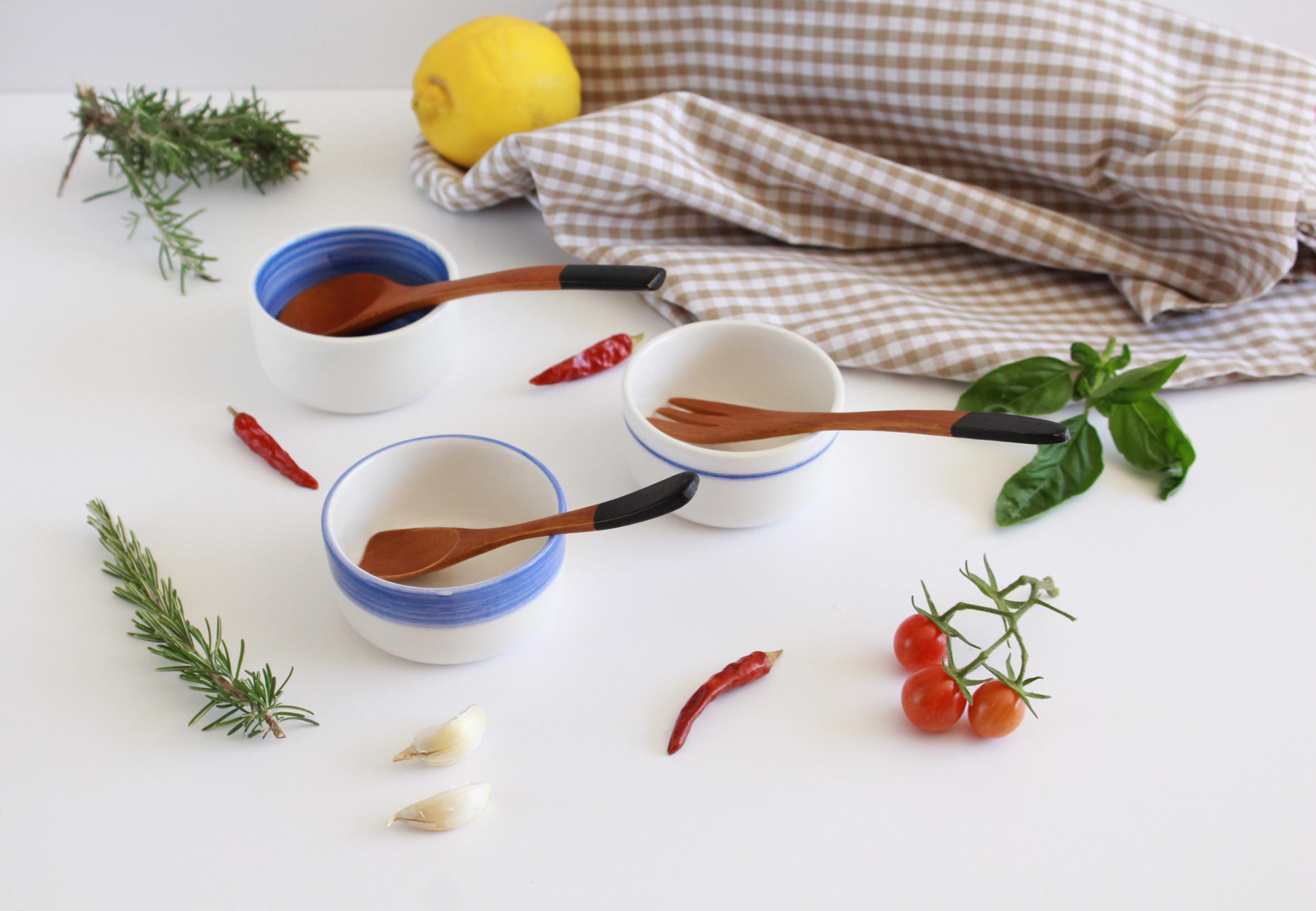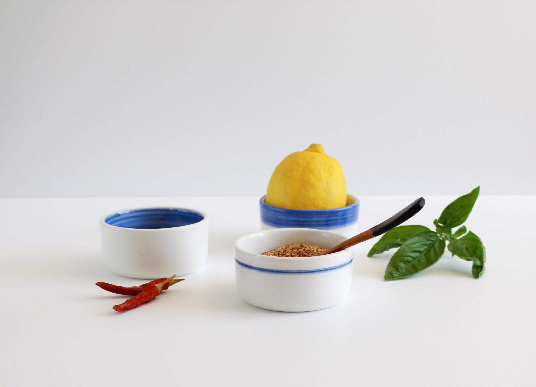 Pequeños cuencos de cerámica esmaltada, pensados para acompañarte en la cocina o la mesa con sencillez y color. Puedes usarlos para salsas, frutos secos, helado, especias o sencillamente como porta-objetos.