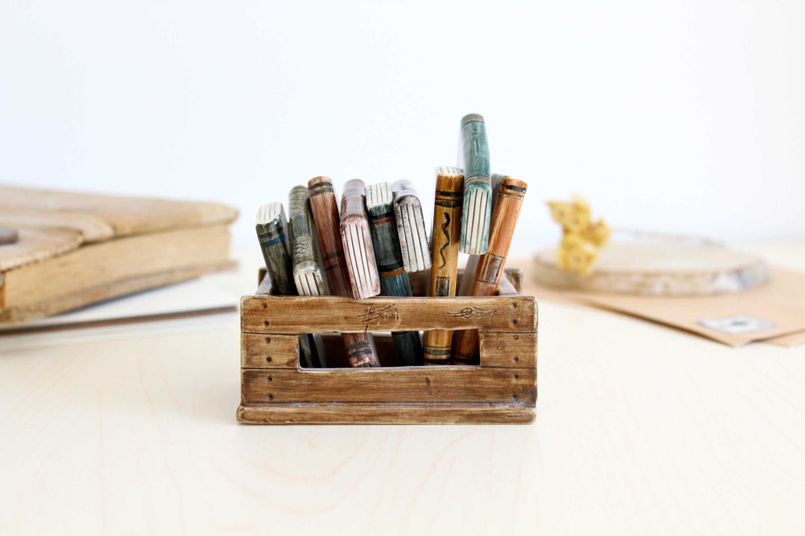 Este conjunto de cerámica en miniatura está realizado con materiales de alta calidad, modelada pieza por pieza y pintada a mano y cocido a más de 1000ºC dos veces en nuestro pequeño horno de cerámica.