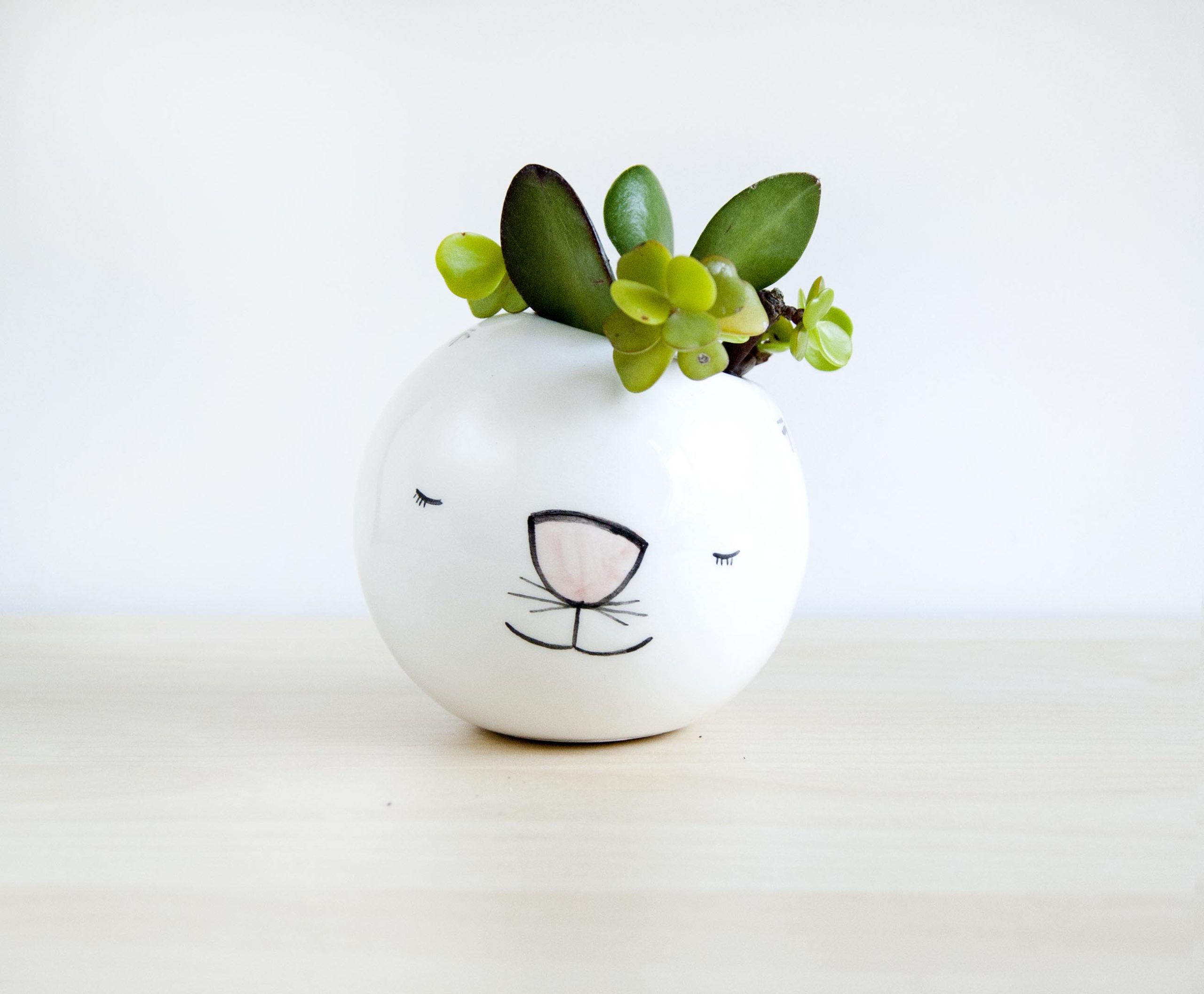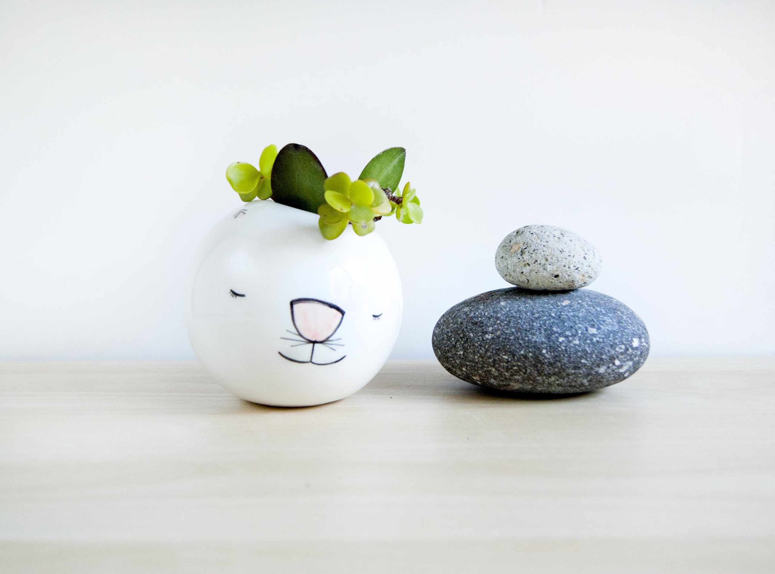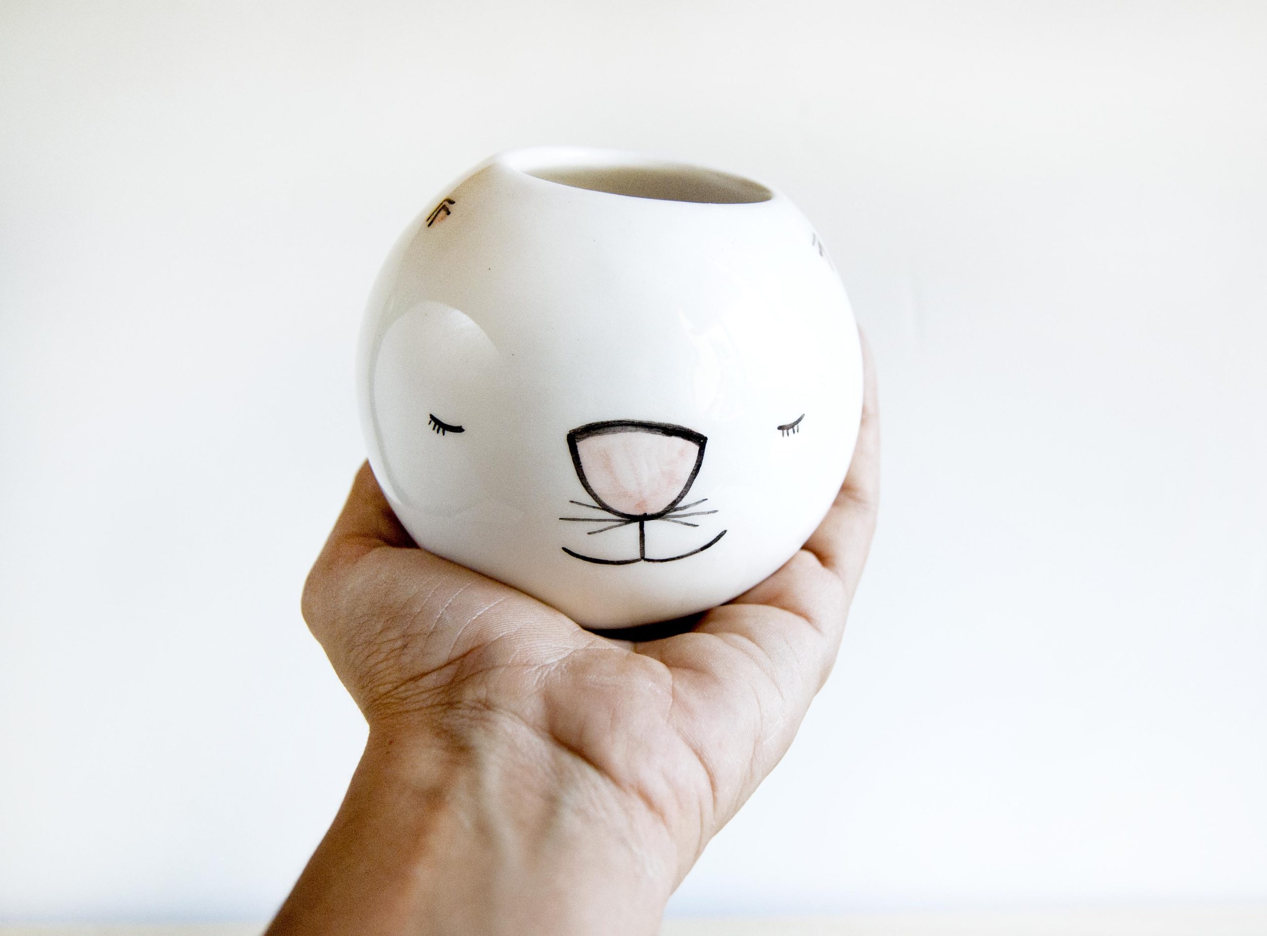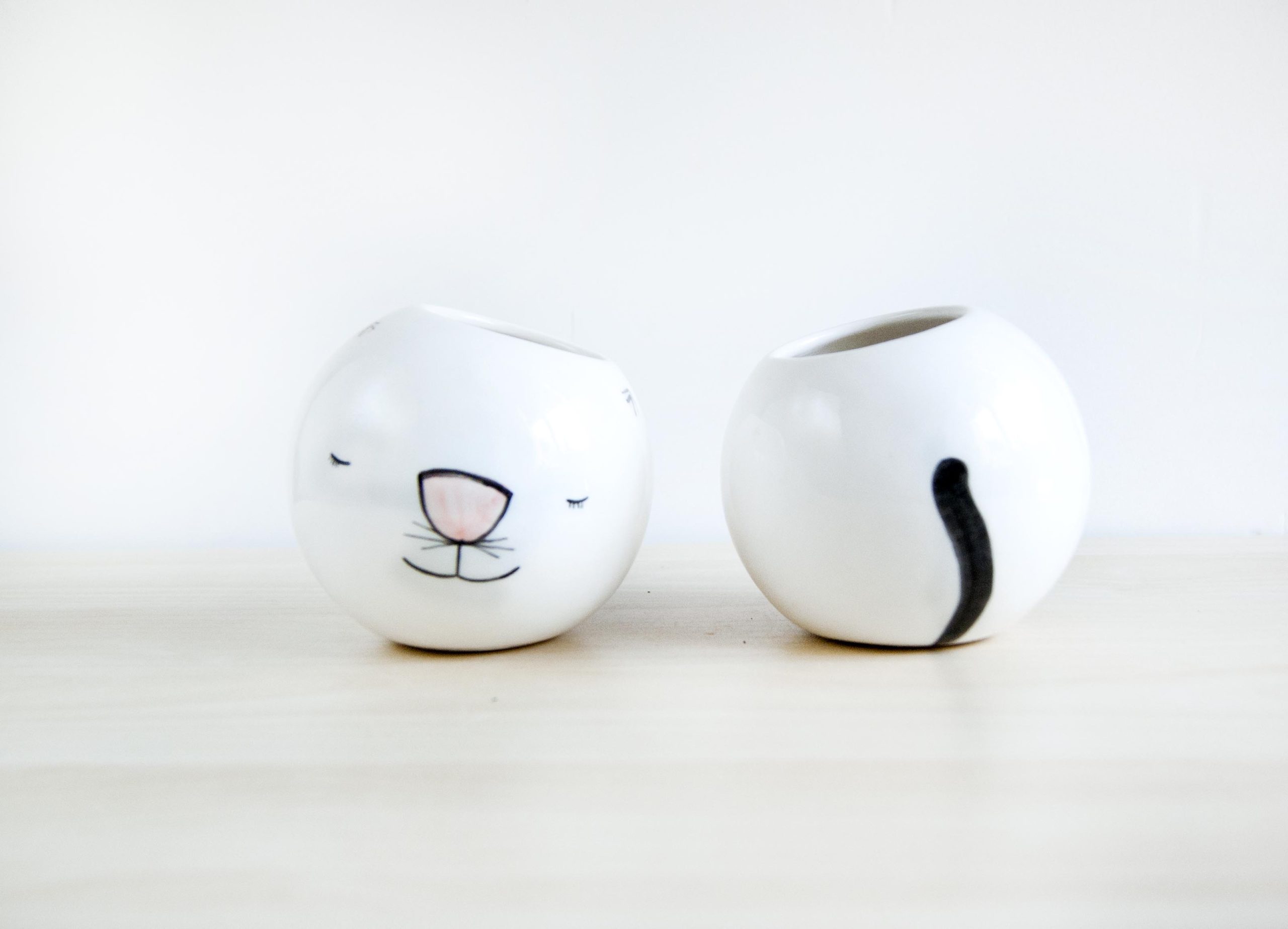 Manolo: Macetero de cerámica kawaii con carita de gato