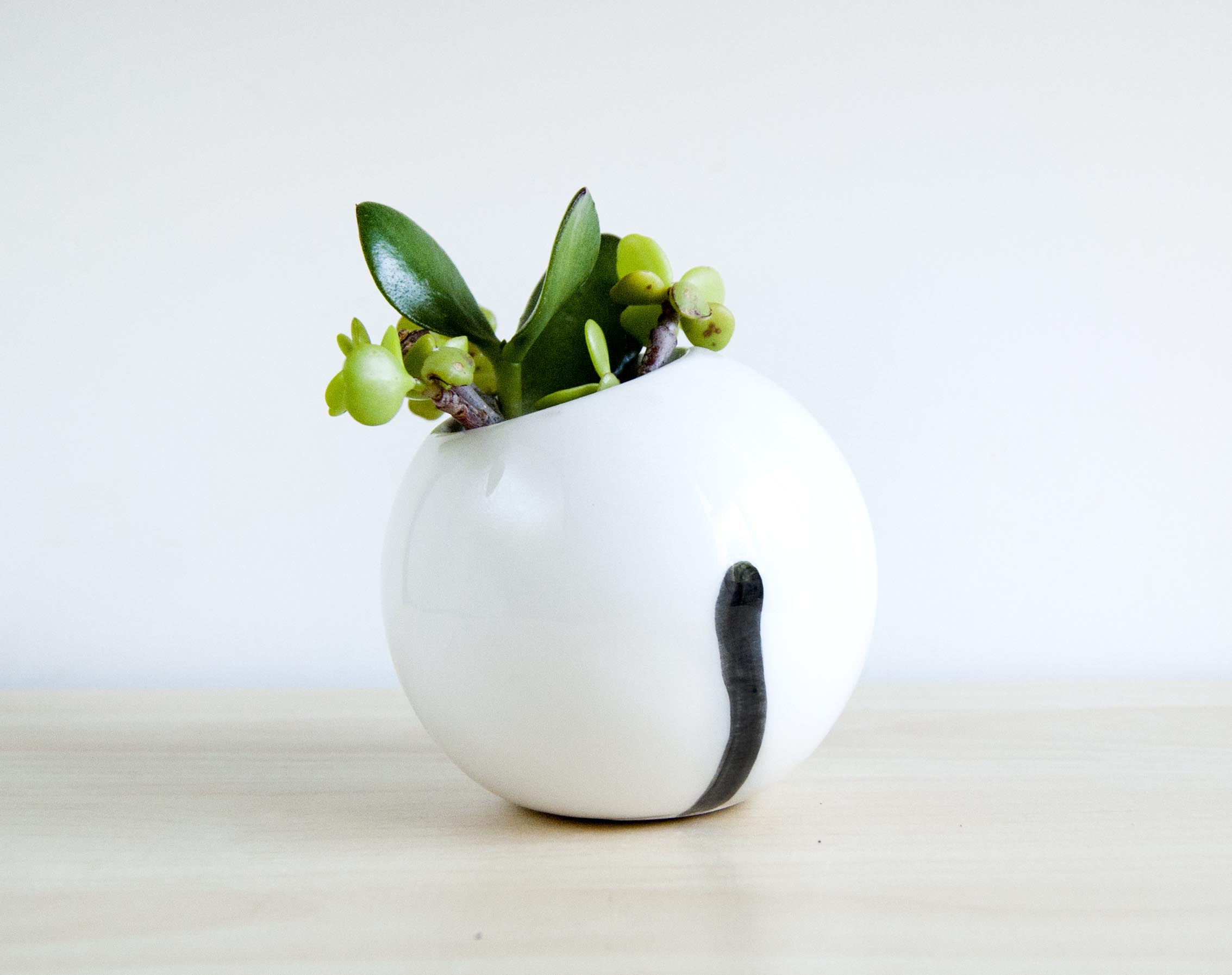 Este es Manolo, un macetero redondito de cerámica que nació para acompañar plantas pequeñas, cactus o suculentas que no necesitan mucho, pero sí un lugar bonito donde estar.