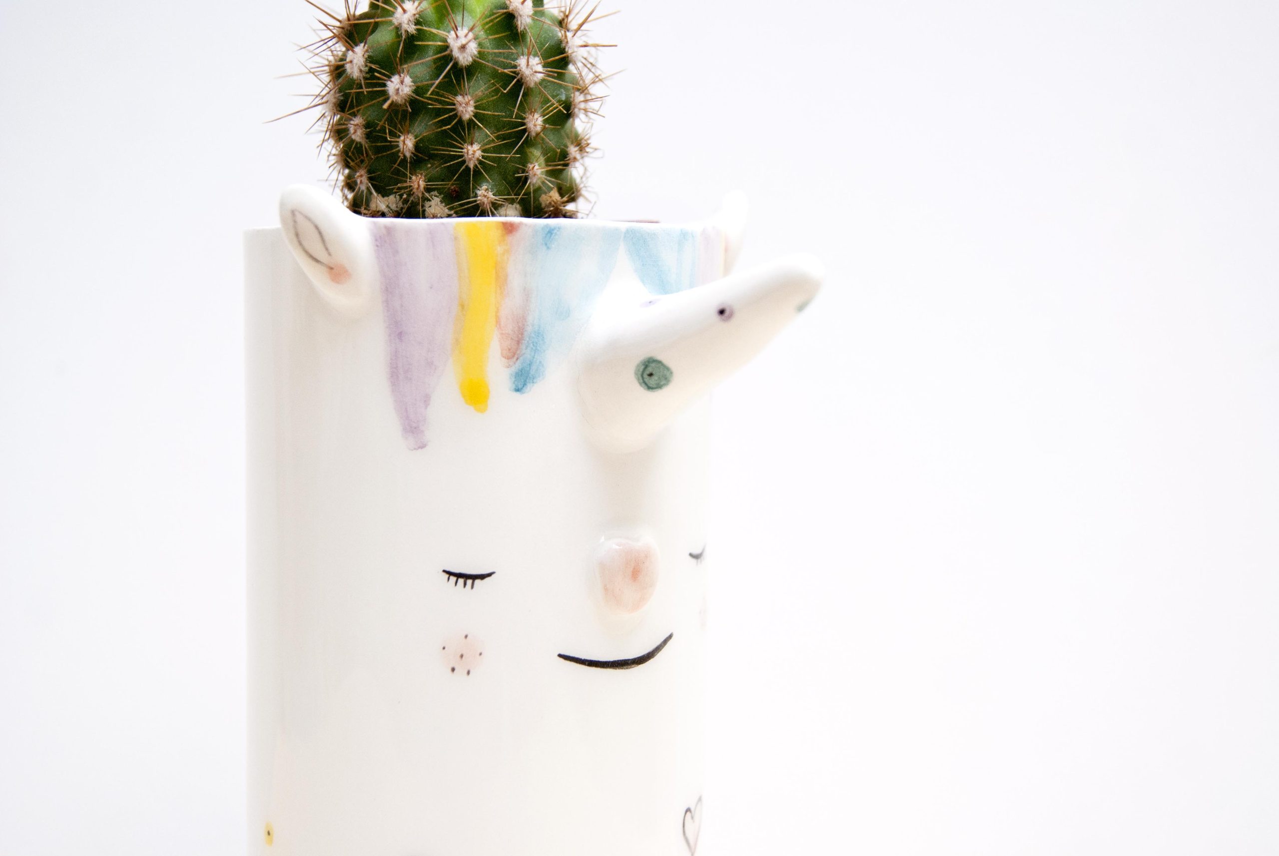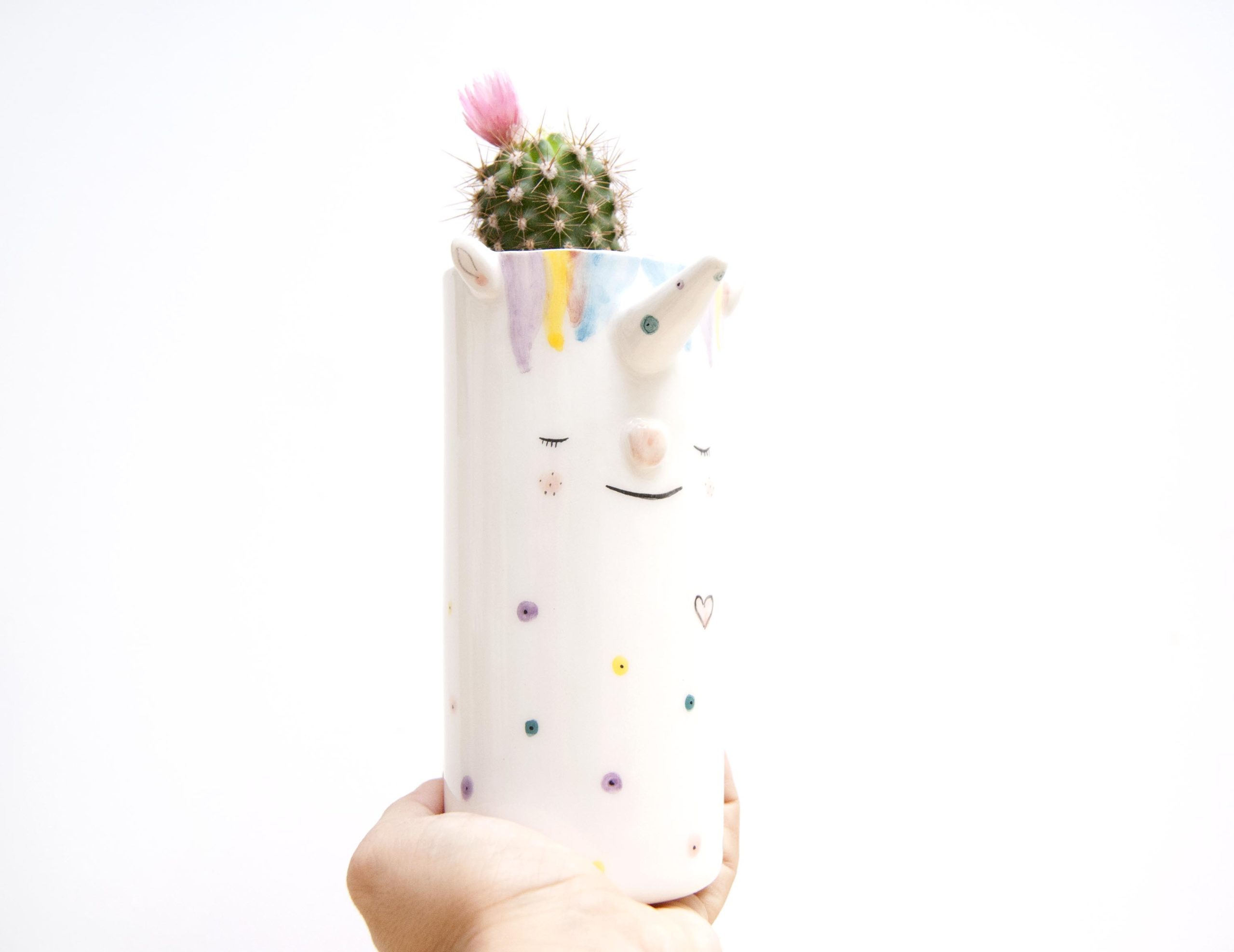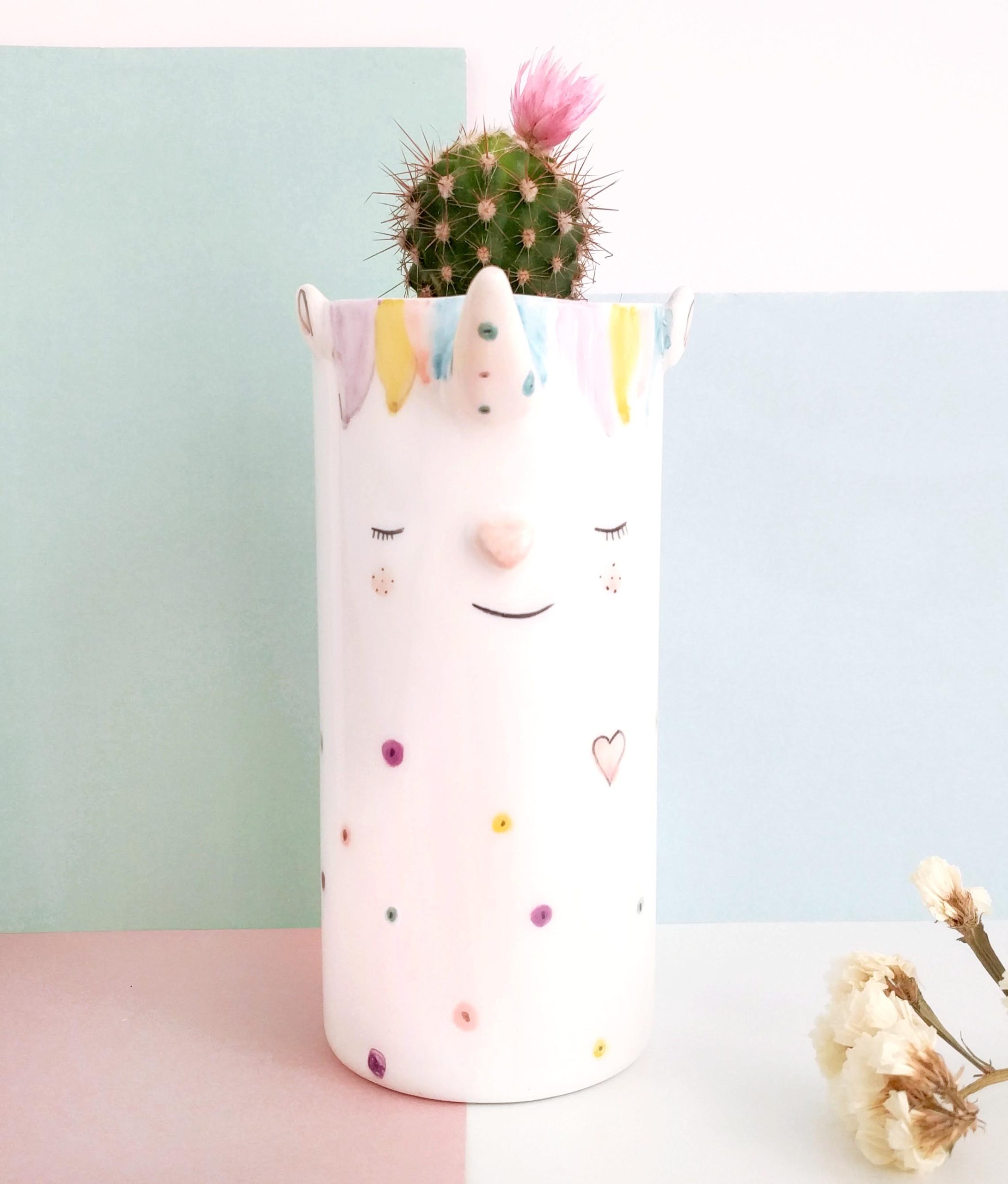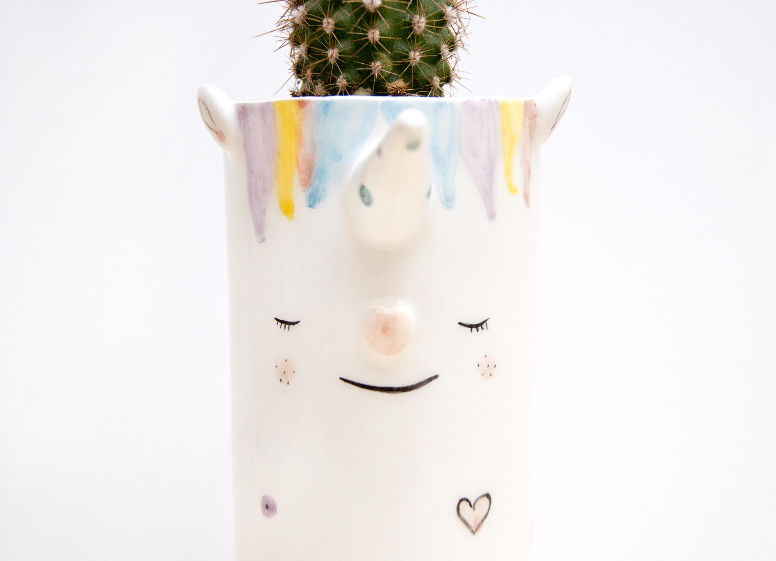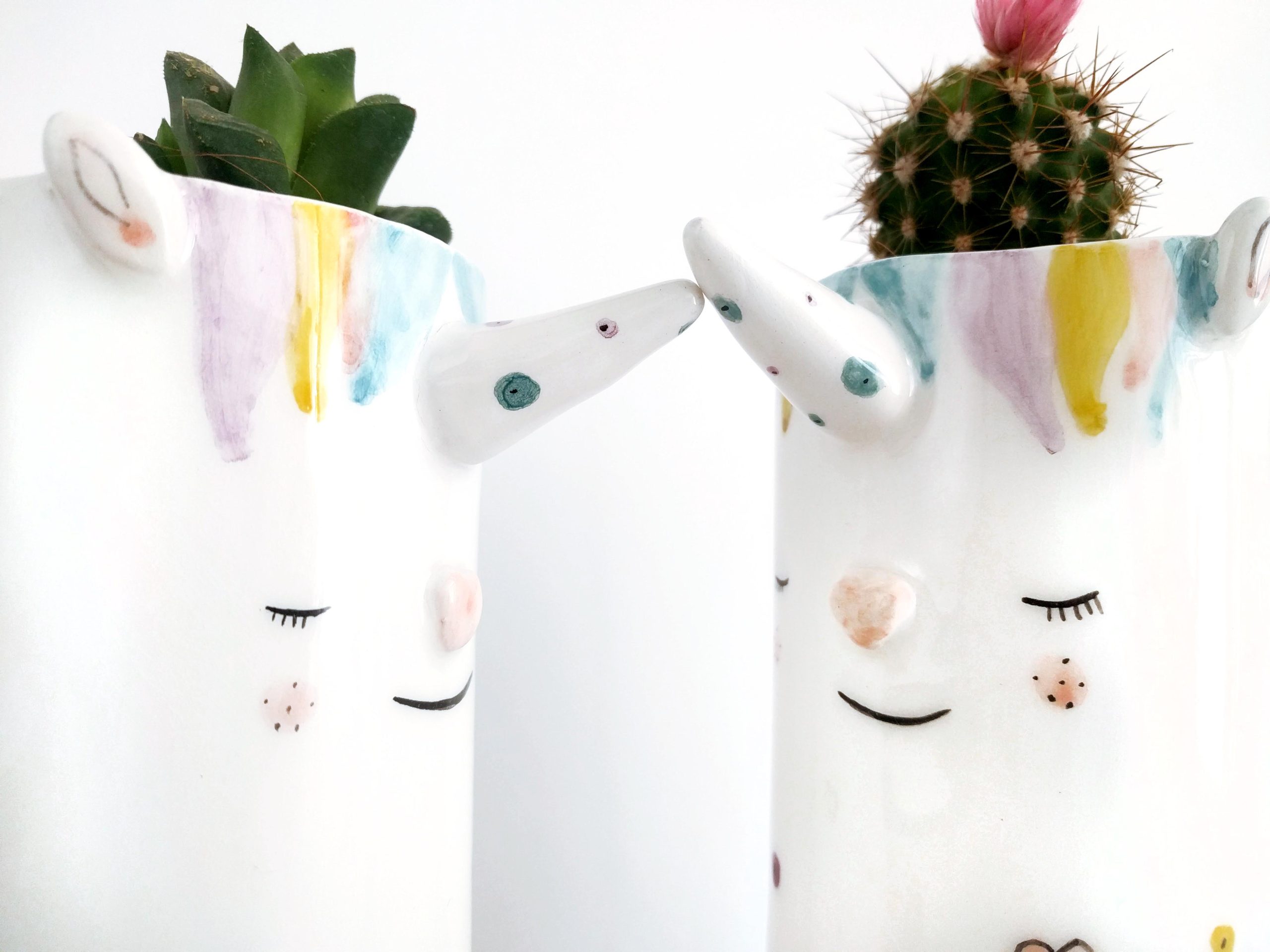 Victoria: Macetero de cerámica con forma de unicornio.