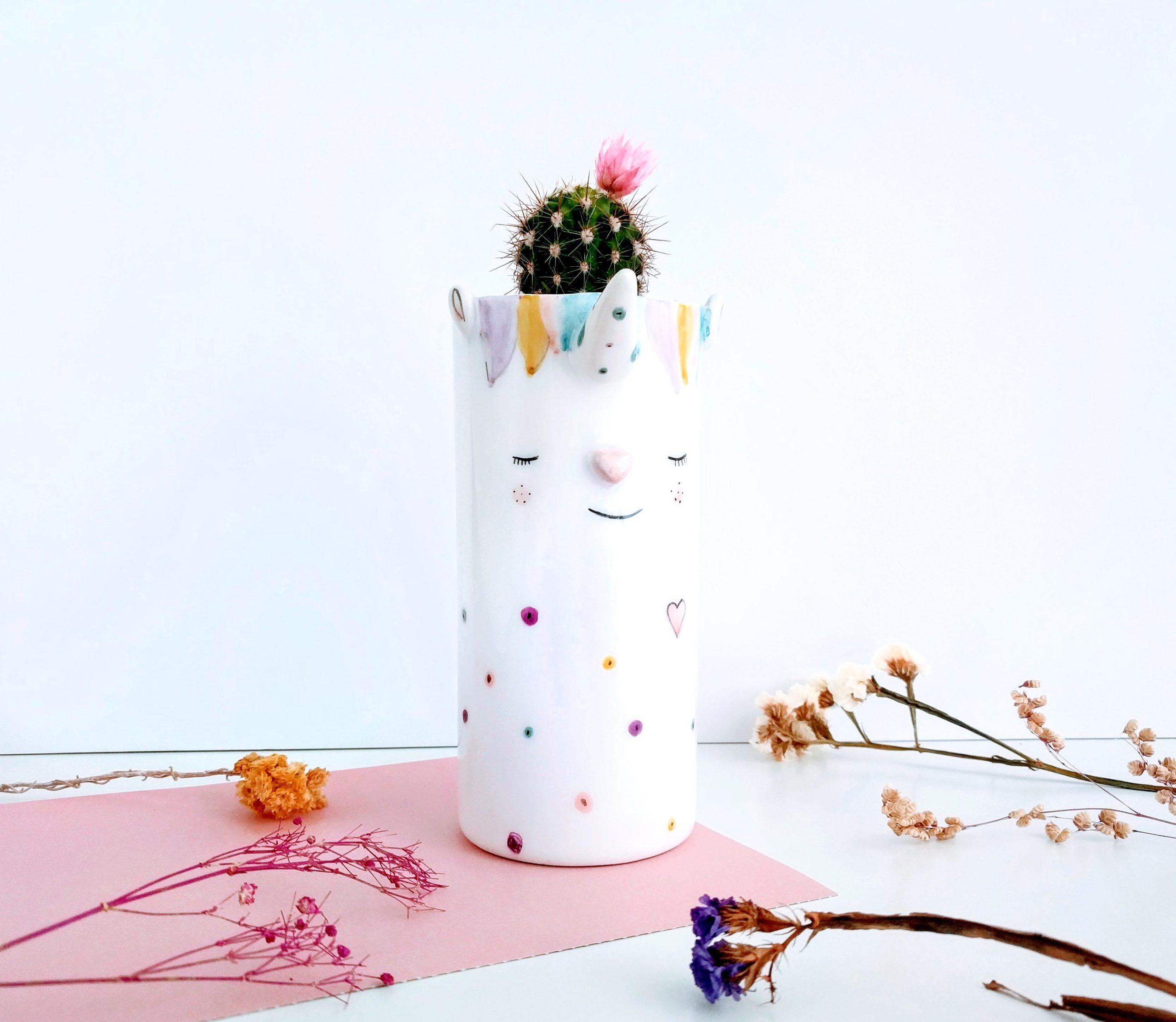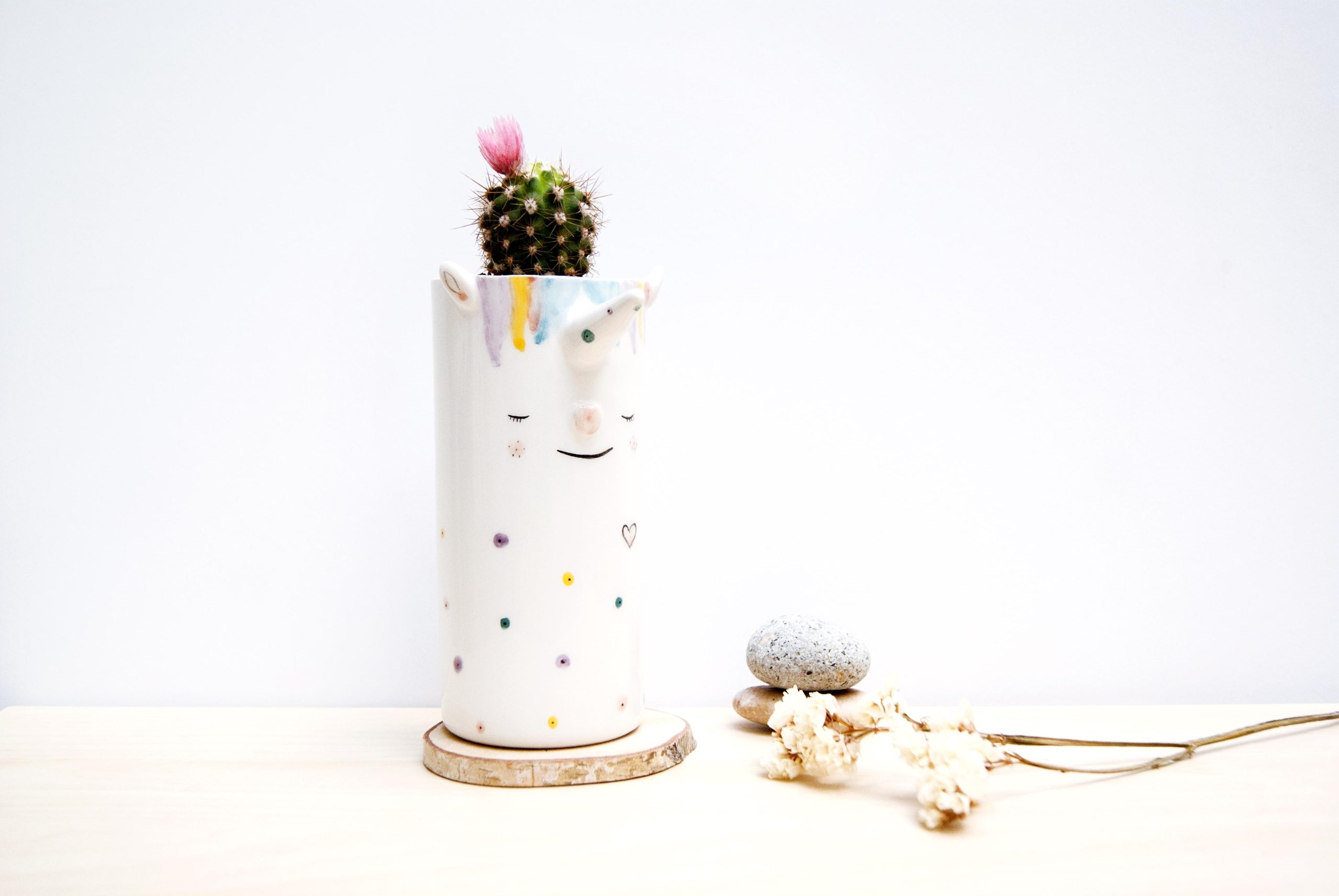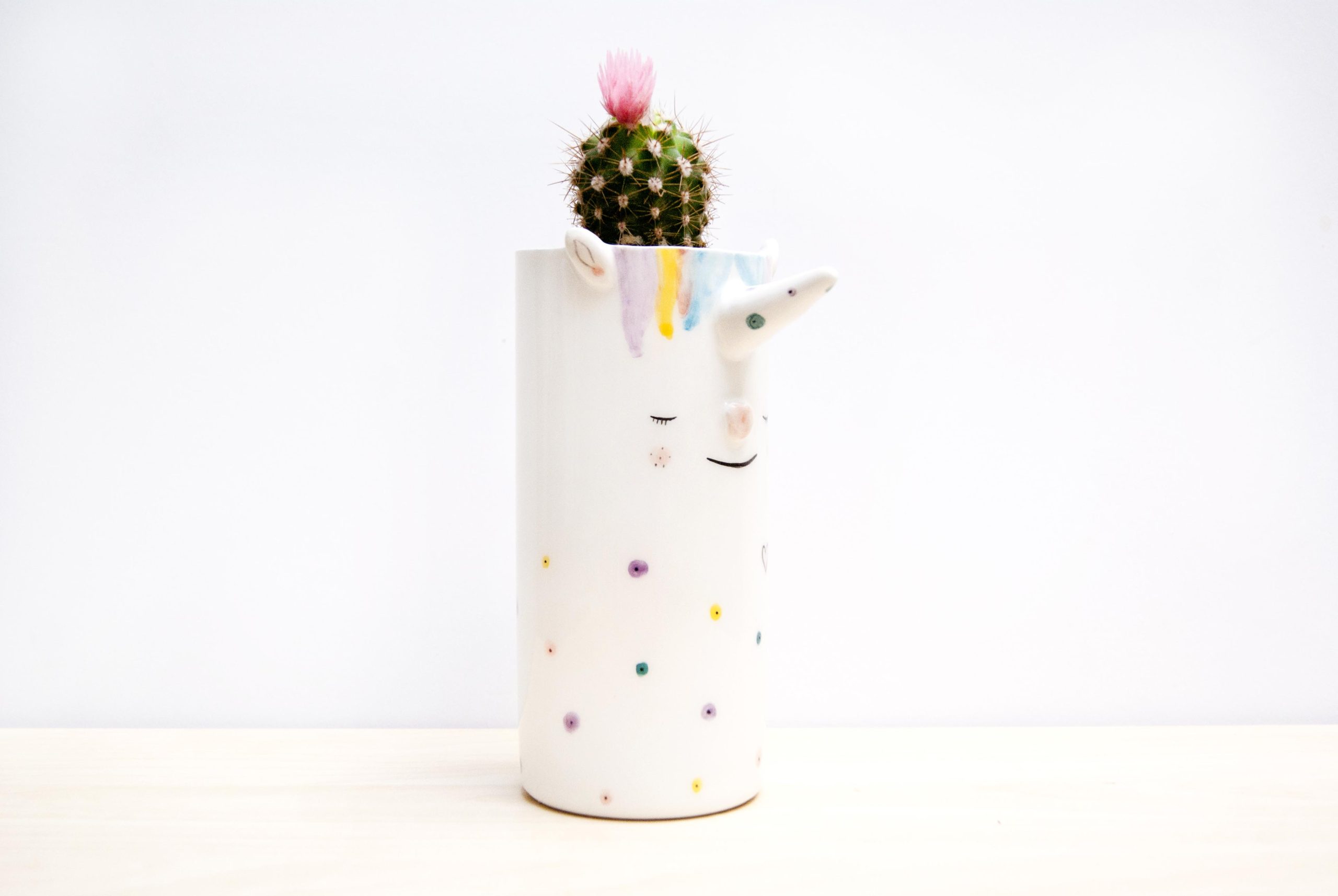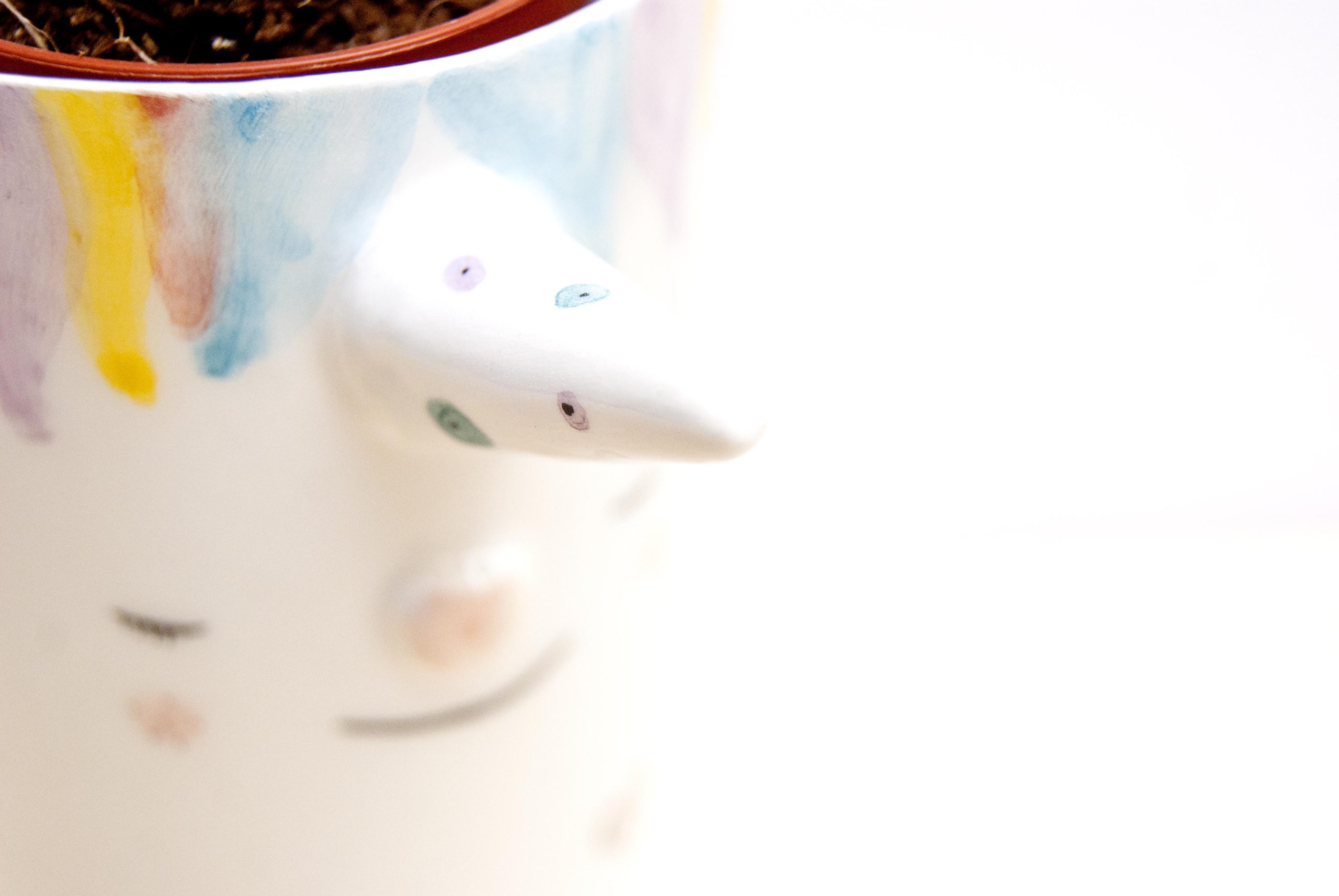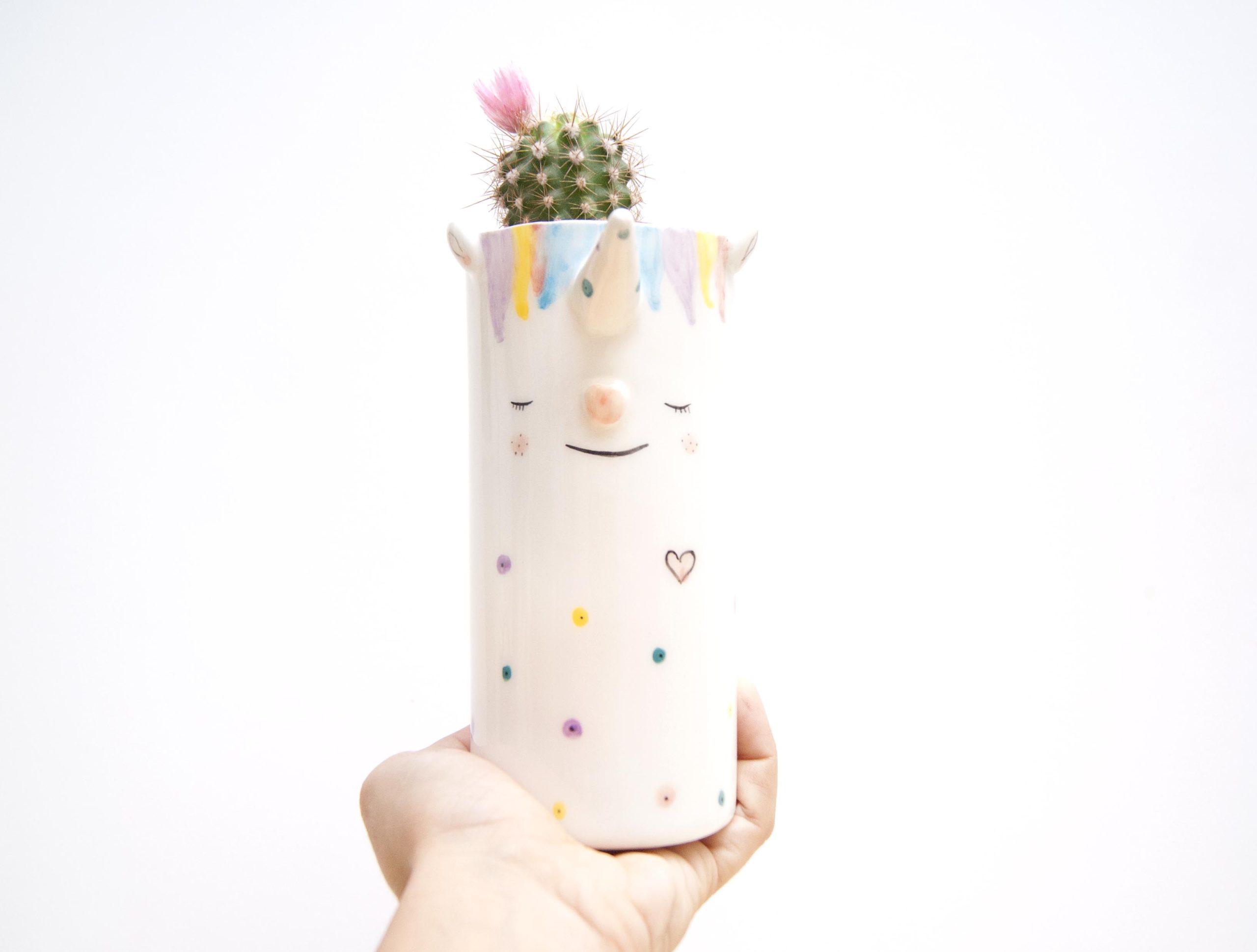Victoria: Macetero de cerámica con forma de unicornio.